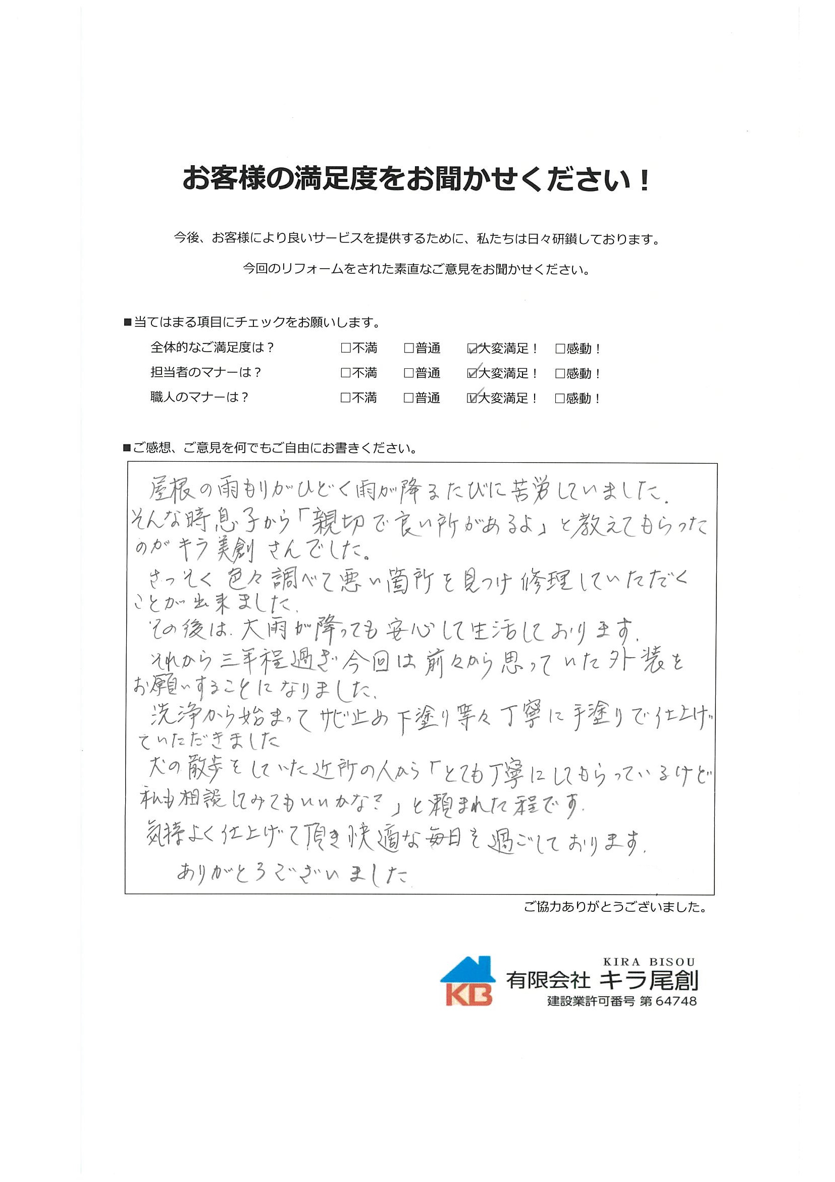 屋根の雨もりがひどく雨が降るたびに苦労していました。