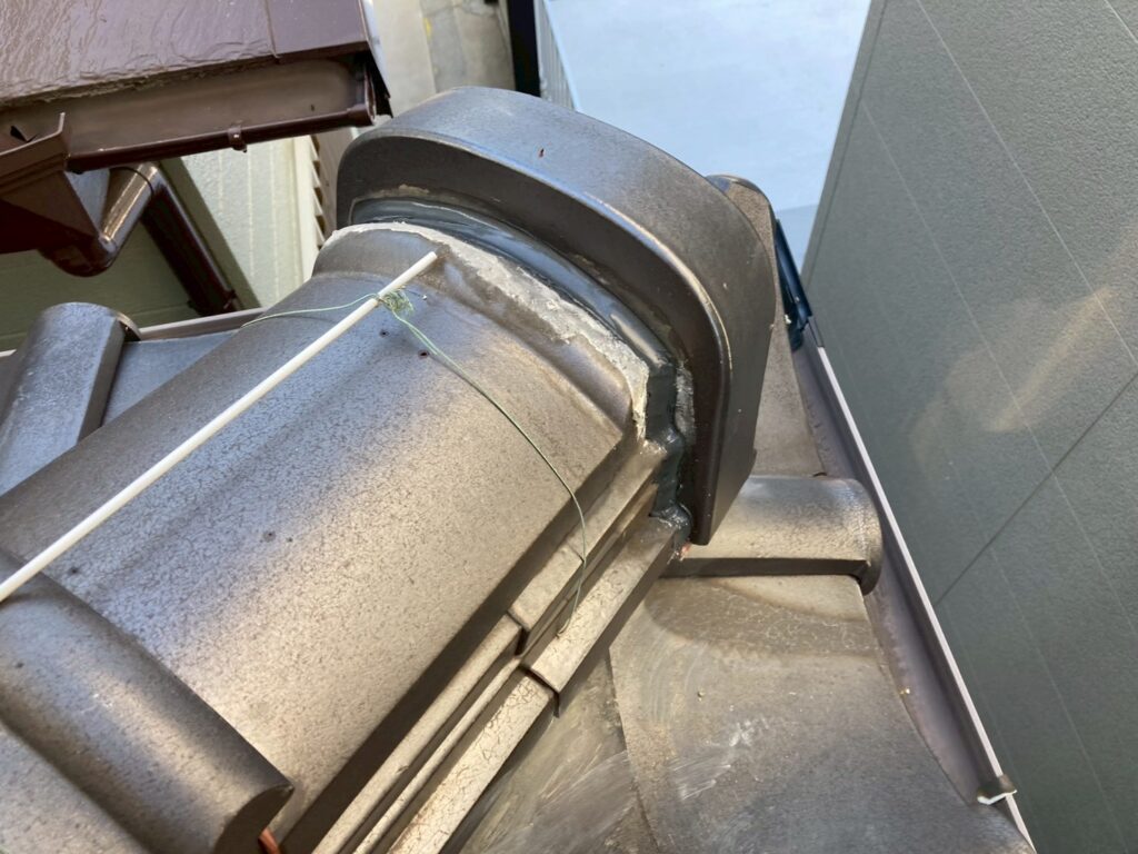 平部は問題無かったが、棟の瓦がズレでおり、漆喰も劣化が見られました。